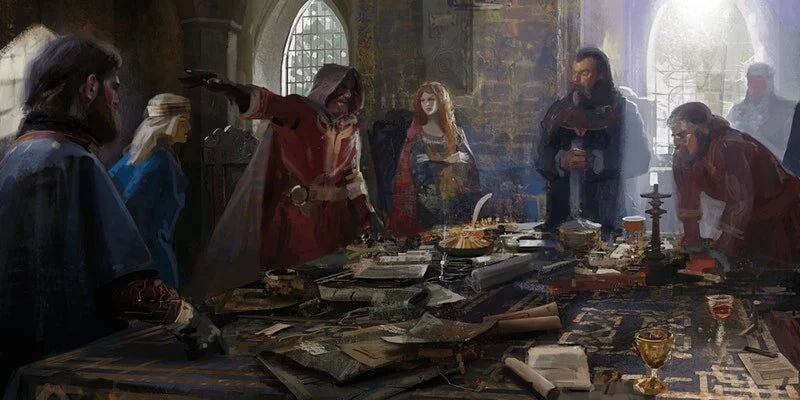 As Thou Commands is a rules-light megagame where the players create and run fictional feudal duchies. These duchies comprise an entire medieval kingdom, and players’ decisions will have impacts both near and far. Play alternates between drafting narrative elements and participating in council sessions where players will try to negotiate beneficial outcomes to the thorny issues bedeviling the kingdom.