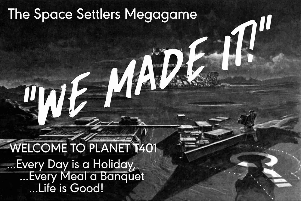 This is a megagame about developing your own colony on a new planet. The premise is that a number of groups funded by private investors, big corporations or major governments, have come to a new world, which had been previously uninhabited, to create colonies and start again.